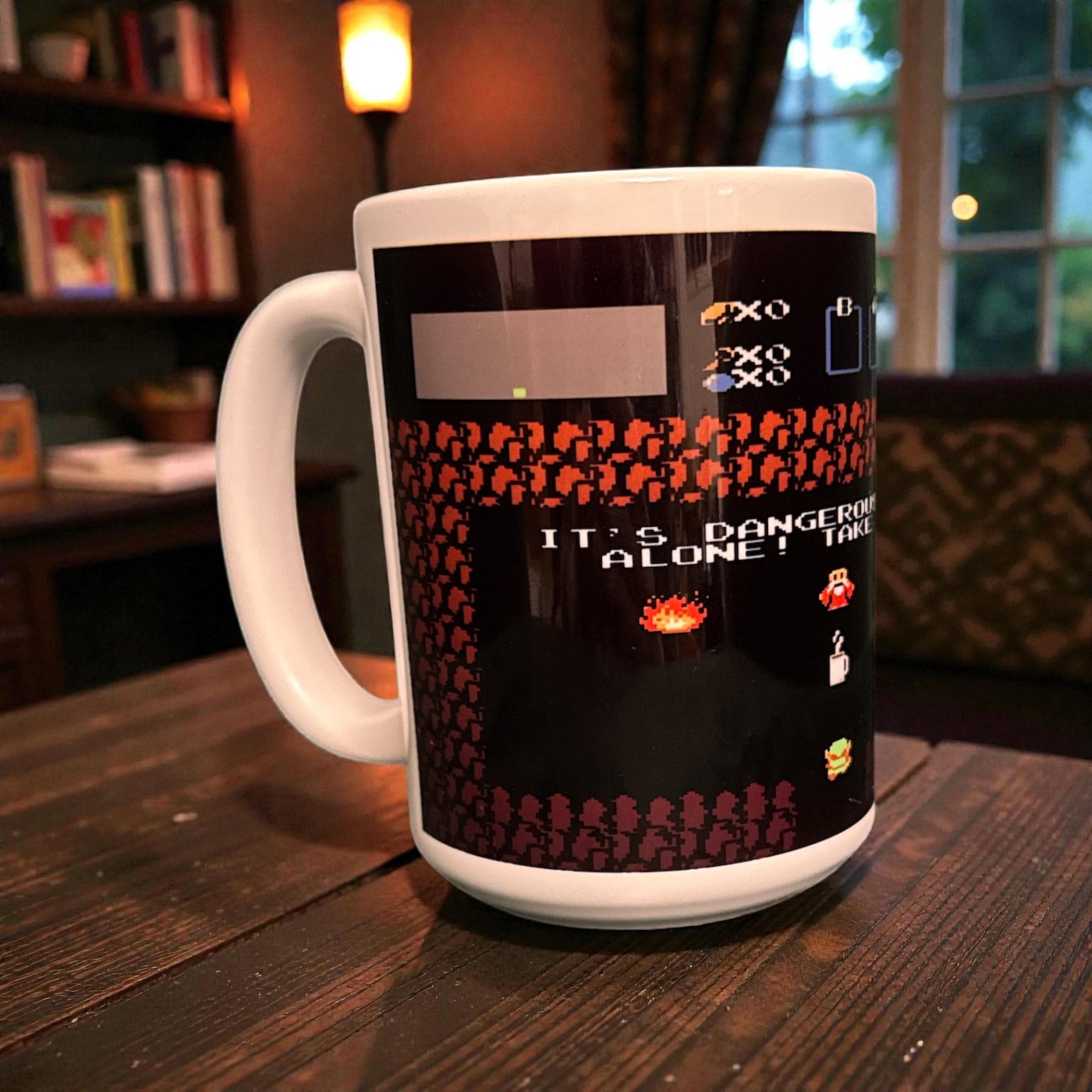 ⚔️ Perfect for: ✔️ Retro gaming fans who love classic NES games ✔️ Legend of Zelda lovers and Nintendo collectors ✔️ Funny gamer gifts for birthdays, holidays, and coffee lovers ✔️ Office desk decor or gaming setup must-have