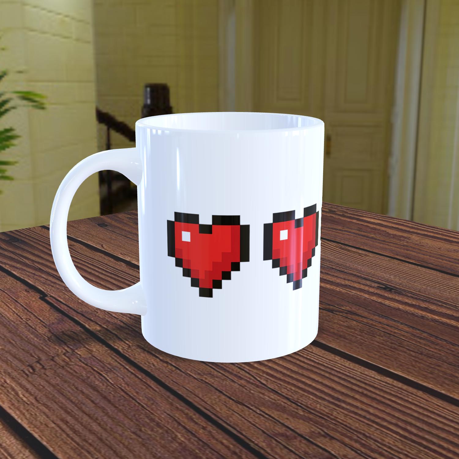 Top off your hearts before the day’s boss fight. This 8-bit hearts mug wraps a row of bright pixel life hearts around a glossy white 15 oz ceramic mug—clean, high-contrast, and readable at a glance. It’s an easy win for retro gamers, cozy desk setups, or a cute Valentine’s/couples gift for player two.